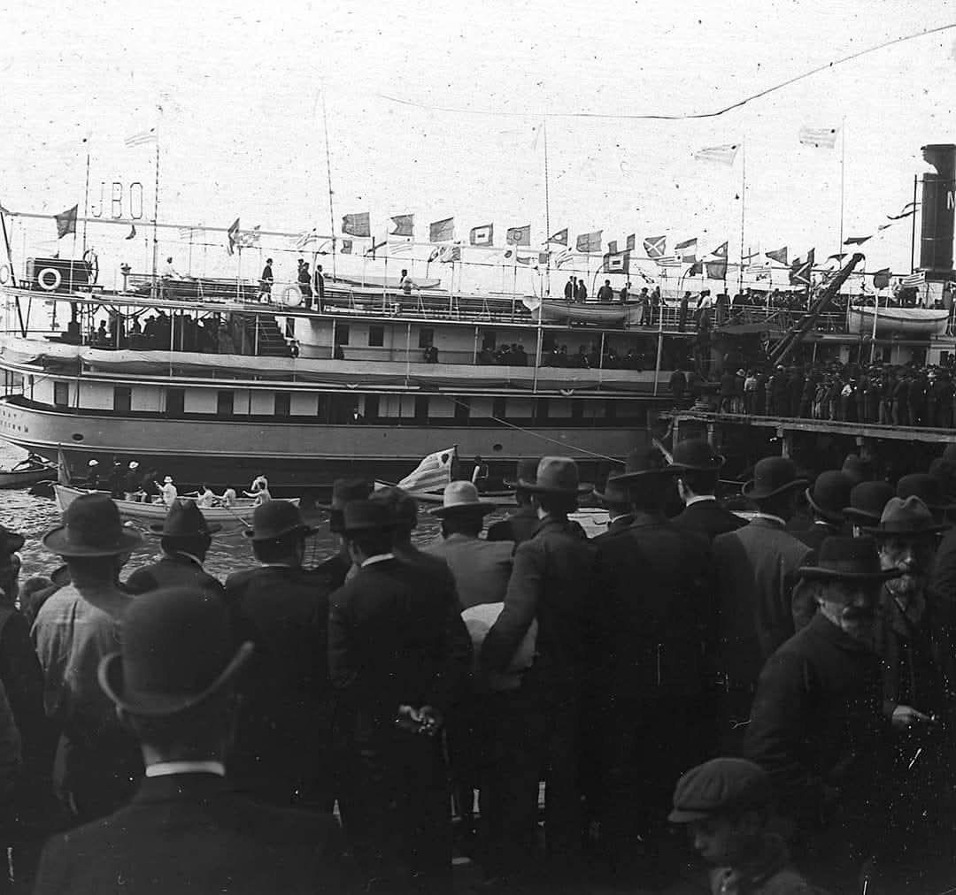 1903 – Vapor «París» de la Compañía de Navegación a Vapor de Nicolás Mihanovich. El buque se encuentra empavesado porqué en el viaja el Presidente de la República Oriental del Uruguay – Don José Batlle y Ordóñez. (Fotógrafo José Cubela).