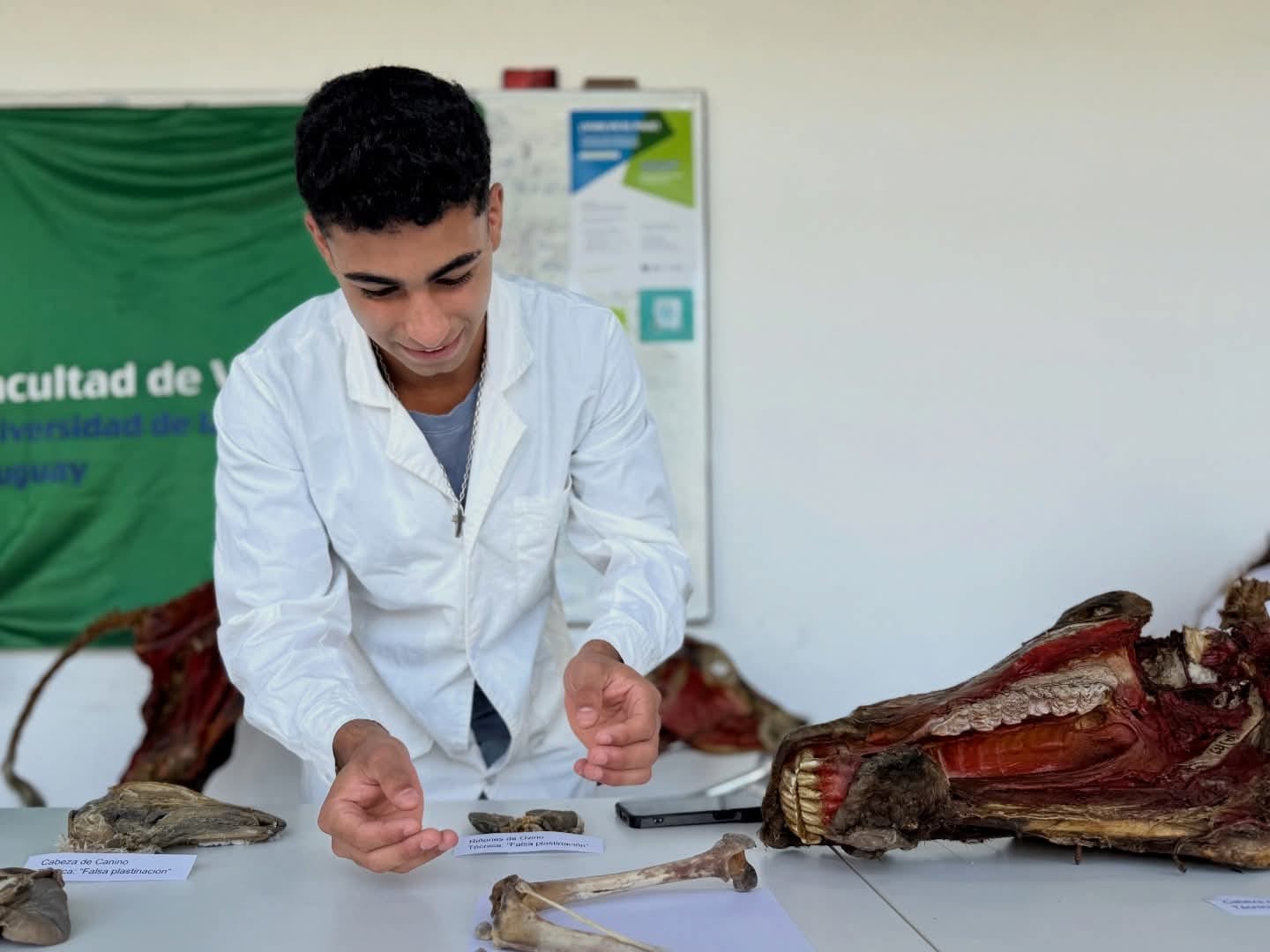 Un hito en la enseñanza de la anatomía veterinaria se vivió este miércoles 10 de diciembre en la sede Salto de la Universidad de la República (UDELAR), donde estudiantes y docentes de la Facultad de Veterinaria organizaron una notable exposición. Ubicada en el Piso 0 de la sede, la muestra destacó por presentar materiales cadavéricos preparados con técnicas de conservación que eliminan el uso del formaldehído, un compuesto químico conocido por su toxicidad.