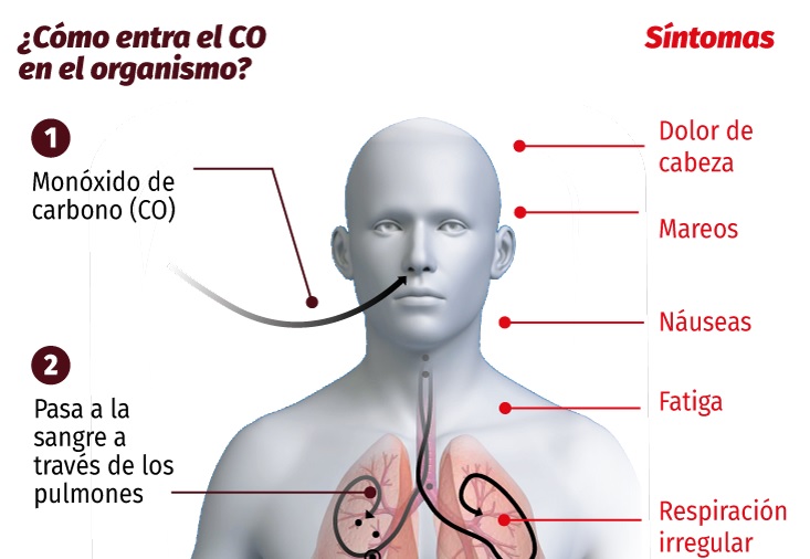 En cuanto a los síntomas que genera la intoxicación por monóxido de carbono, se alerta por dolores de cabeza, náuseas, vómitos y malestar o somnolencia general. Pero en casos más graves hay convulsiones, coma y la muerte.