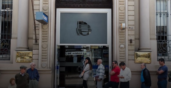 Se observan largas filas para ingresar al edificio del BROU, tras el inicio de la campaña de préstamos especiales para pasivos, que se extenderá hasta diciembre. A través de este mecanismo, jubilados y pensionistas pueden solicitar un nuevo crédito o renovar el existente sin necesidad de haber cancelado un porcentaje mínimo de las cuotas pendientes, y el monto se acredita de forma inmediata en la cuenta del beneficiario.