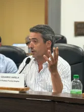 El edil diálogo en un medio capitalino en dónde defendió su decisión de acompañar el proyecto de obras y pago a proveedores, pese a la amenaza de expulsión del Frente Amplio. Denunció «manija» política y agresiones hacia sus compañeras de bancada.
