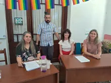 El intendente de Salto, Carlos Albisu, junto al coordinador de Descentralización, Federico Filonenko, y el equipo técnico del área, mantuvo una reunión de trabajo con organizadores de festivales y destrezas gauchas del departamento.
