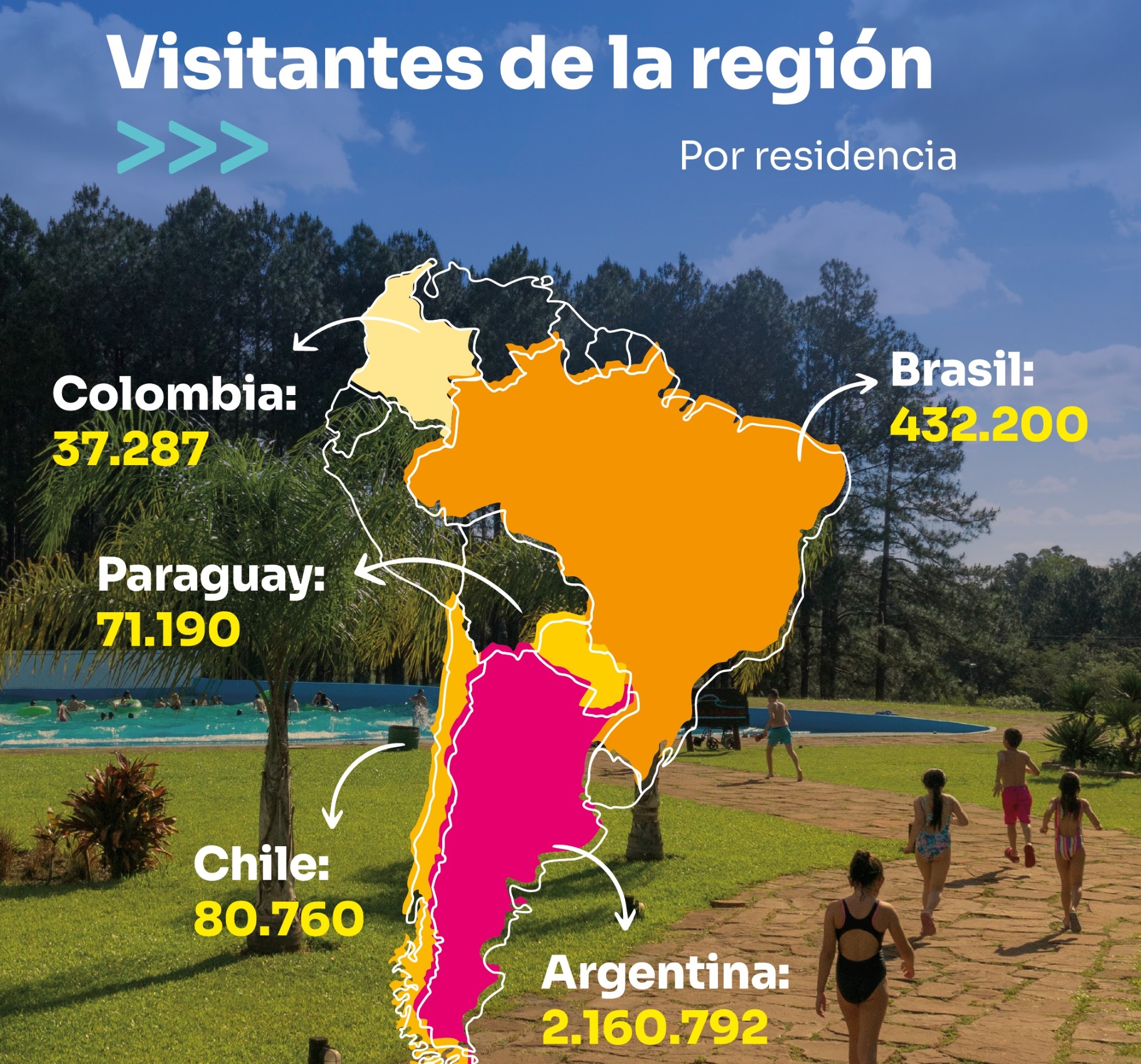 De acuerdo con la información proporcionada por el Departamento de Investigación y Estadísticas del Ministerio de Turismo (Mintur), el turismo receptivo registró un total de 3.207.536 visitantes entre los meses de enero y noviembre de 2025, generando un gasto total estimado de 1.784 millones de dólares. La zona termal del litroal del país recibió en su gran mayoría a visitantes argentinos, brasileños y paraguayos, tomando en cuenta que la conectividad aérea de Paranair logra que un conjunto de visitantes disfrute de las termas.