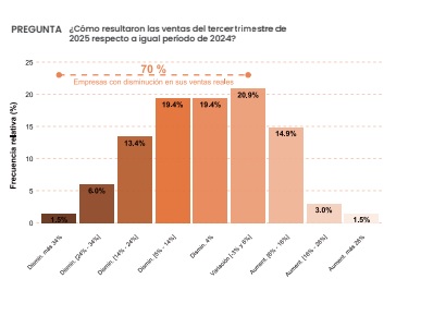 Los datos revelan un deterioro severo del sector comercial, con 70% de empresas con caídas interanuales en ventas. No obstante, se observa que la mayoría mantiene plantilla (68,7%) y la estructura operativa, indicando expectativa de recuperación o capacidad de resistencia ante un escenario adverso prolongado. El shock experimentado revela que las empresas que redujeron cayeron de 25% a 15,4% (-40%) en comparación con sondeos anteriores. La falta de ventas impacta no solo en la competitividad de las empresas, sino además en los puestos de trabajo, al margen que la situación actual no es considerada alarmante. Igualmente las medidas económicas que se han instrumentado se aplican por el momento solo en las zonas de frontera con Brasil y el Ministerio de Economía las evaluará para ver si amerita instrumentarlas en el litoral.