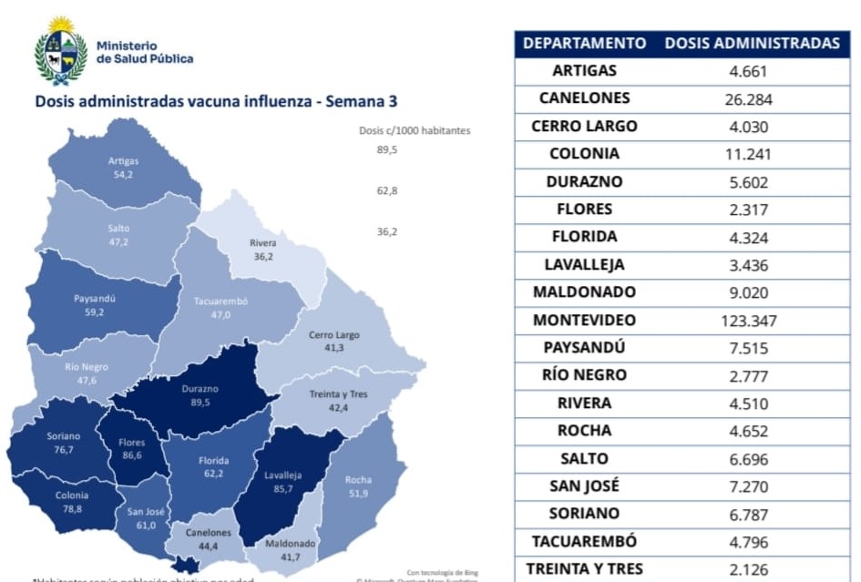 Este volumen de inmunización sitúa a Salto con una tasa de 47,2 dosis por cada 1.000 habitantes, una cifra que refleja el compromiso de la población local frente a la llegada de los meses más fríos del año. A nivel nacional, el departamento contribuye a un total país que ya supera las 241.000 dosis administradas.
