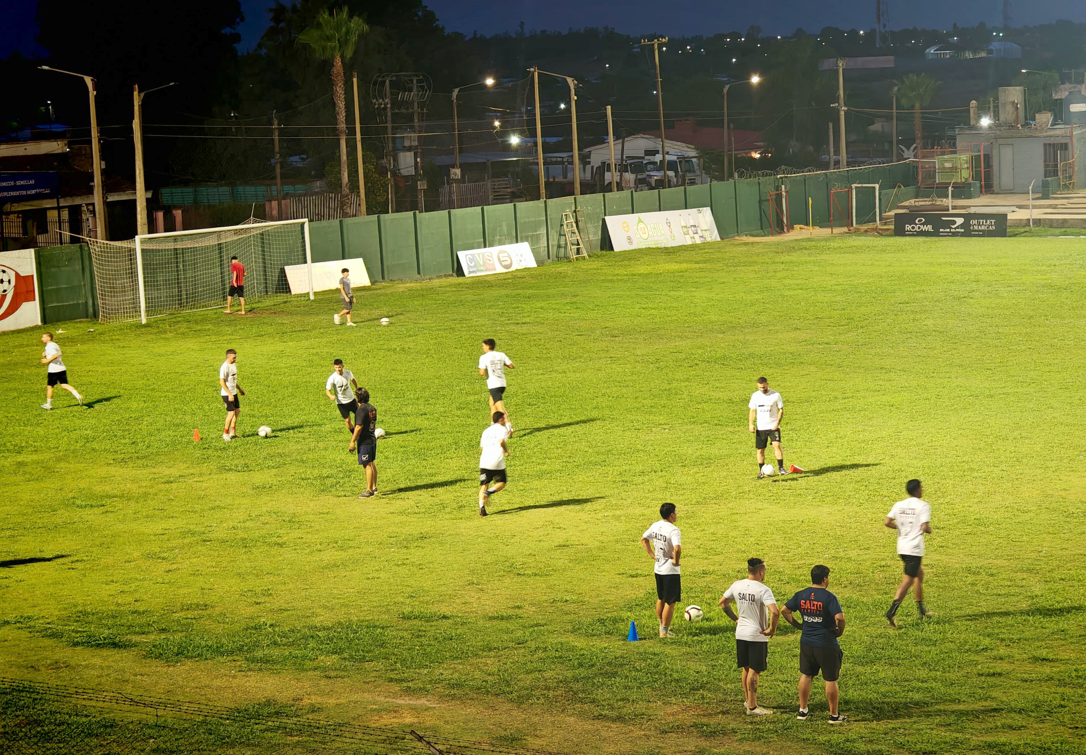 Rony Costa se erige entre todos y los llama. Da unas palabras y manda a su plantel a hacer un calentamiento con pelota. Tocan y se mueven mientras su ayudante corrige los movimientos. Los goleros van aparte, por supuesto, con Álvaro Alvez. Allí realizan los ejercicios correspondientes.