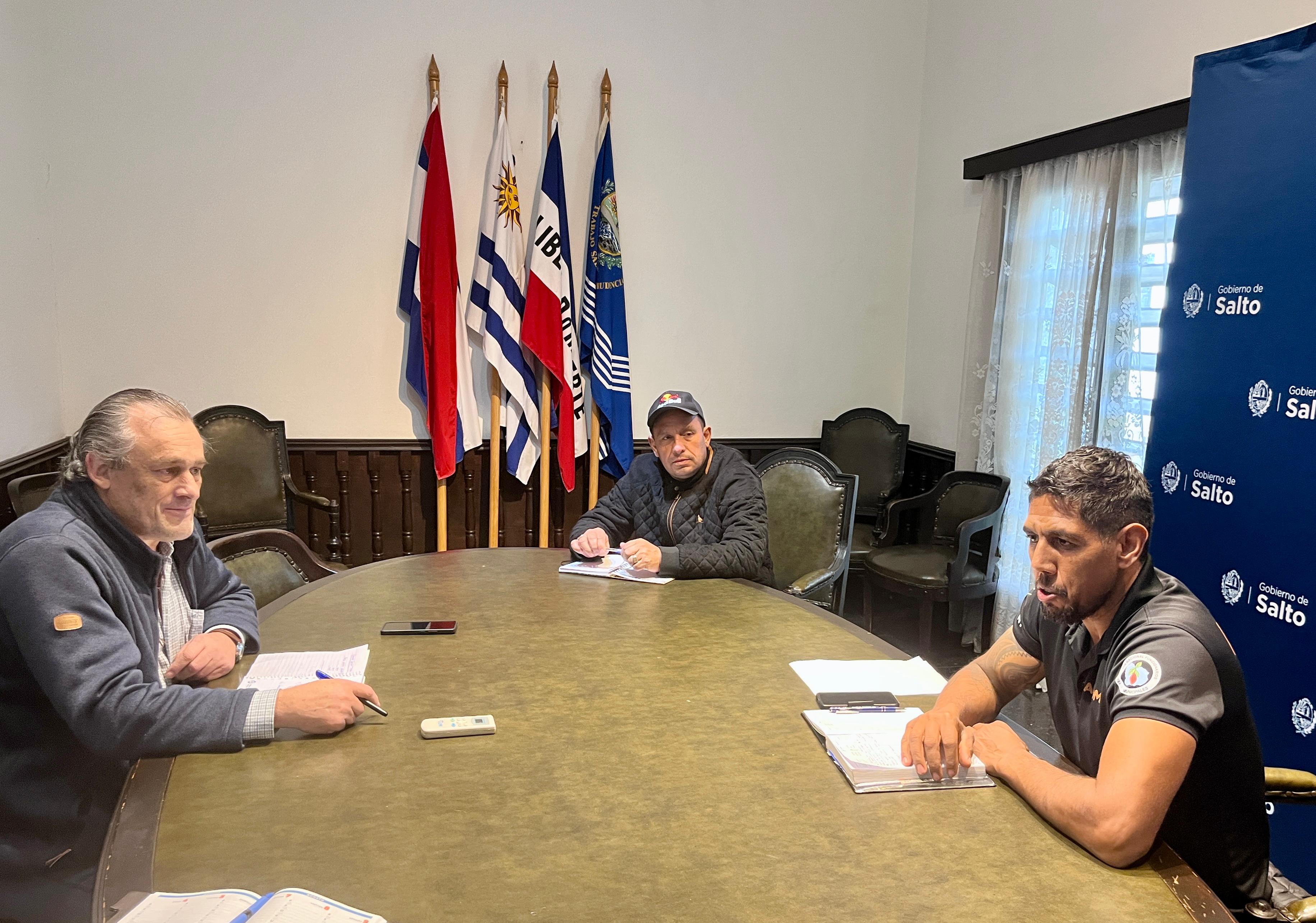 La Intendencia de Salto recibió en la jornada de ayer a representantes de la Asociación de Empleados y Obreros Municipales de Salto (ADEOMS), a solicitud del gremio, en el marco de una primera instancia de intercambio institucional. Participaron del encuentro el coordinador de Recursos Humanos del Gobierno departamental, Alejandro Secco, el presidente del sindicato, Juan Carlos Gómez y el secretario, Mario Martínez. Cabe señalar que uno de los malestares del gremio dado a conocer en una entrevista con CAMBIO era justamente la falta de diálogo con las autoridades del nuevo Gobierno Departamental y es por eso que se concreta el primer encuentro para avanzar en futuras acciones.