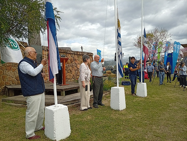La bandera de Artigas fue izada por el productor Omar Burutaran, quien es cabañero y se desempeñó como presidente de la gremial. Además, se indicó en la apertura de la muestra que fue el impulsor del proceso de remodelación que permitió fortalecer y proyectar la muestra hacia el futuro.