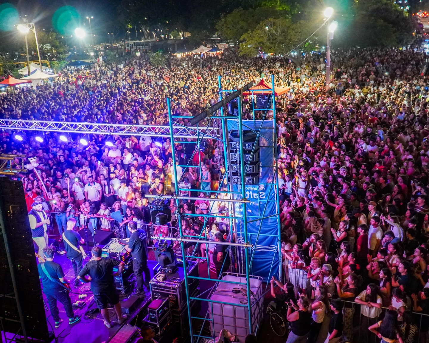 El remozado Espacio Puerto de nuestra ciudad se convirtió entre jueves y viernes en el epicentro de la movilización popular y la alegría. En el marco de la grilla de espectáculos públicos planificada por el Gobierno de Salto para esta semana, una verdadera multitud —compuesta tanto por locatarios como por visitantes que llegaron al departamento— colmó las instalaciones de la explanada para disfrutar de una noche que superó todas las expectativas.