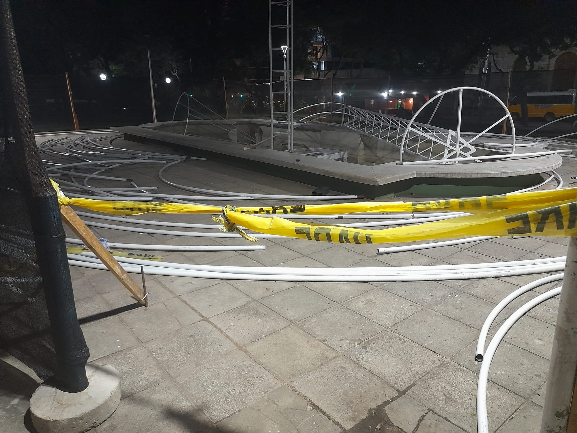 En Plaza Treinta y Tres están en los preparativos de lo que será el árbol navideño 2022, donde año a año acuden más de 1000 personas para visualizar el árbol de gran tamaño y los shows que organiza la Intendencia de Salto. Un lector que ayer estuvo en el lugar nos envió esta foto, y dijo que «hay muchas personas que se dedican a perjudicar, deben tener cuidado porque de lo contrario pueden robar algo». Falta menos de un mes para la presentación, la cual es un atractivo más en nuestra ciudad para disfrutar.