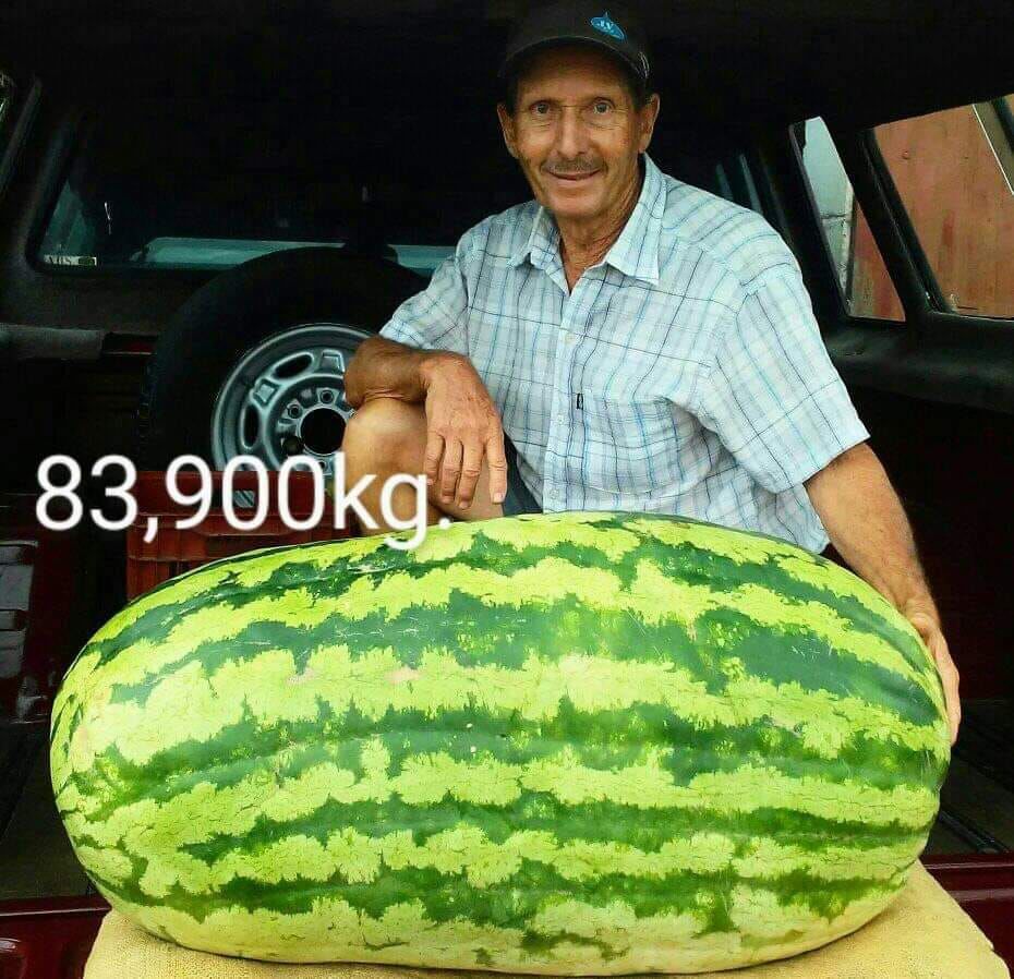 El año pasado, la sandía que obtuvo el récord de la más grande del Uruguay, pesaba 83 kilogramos. En estos días se dio a conocer el nuevo récord, en este 2021 en Rivera se cosechó la actual sandía más grande del Uruguay, que peso 83.900 kilogramos, superando por 900 gramos más a la anterior. Esta sandía que batió el récord se cosechó en el establecimiento de Félix González y Selva Suárez, quienes cultivan esta fruta desde hace más de 60 años en Parada Medina en el Departamento de Rivera.
