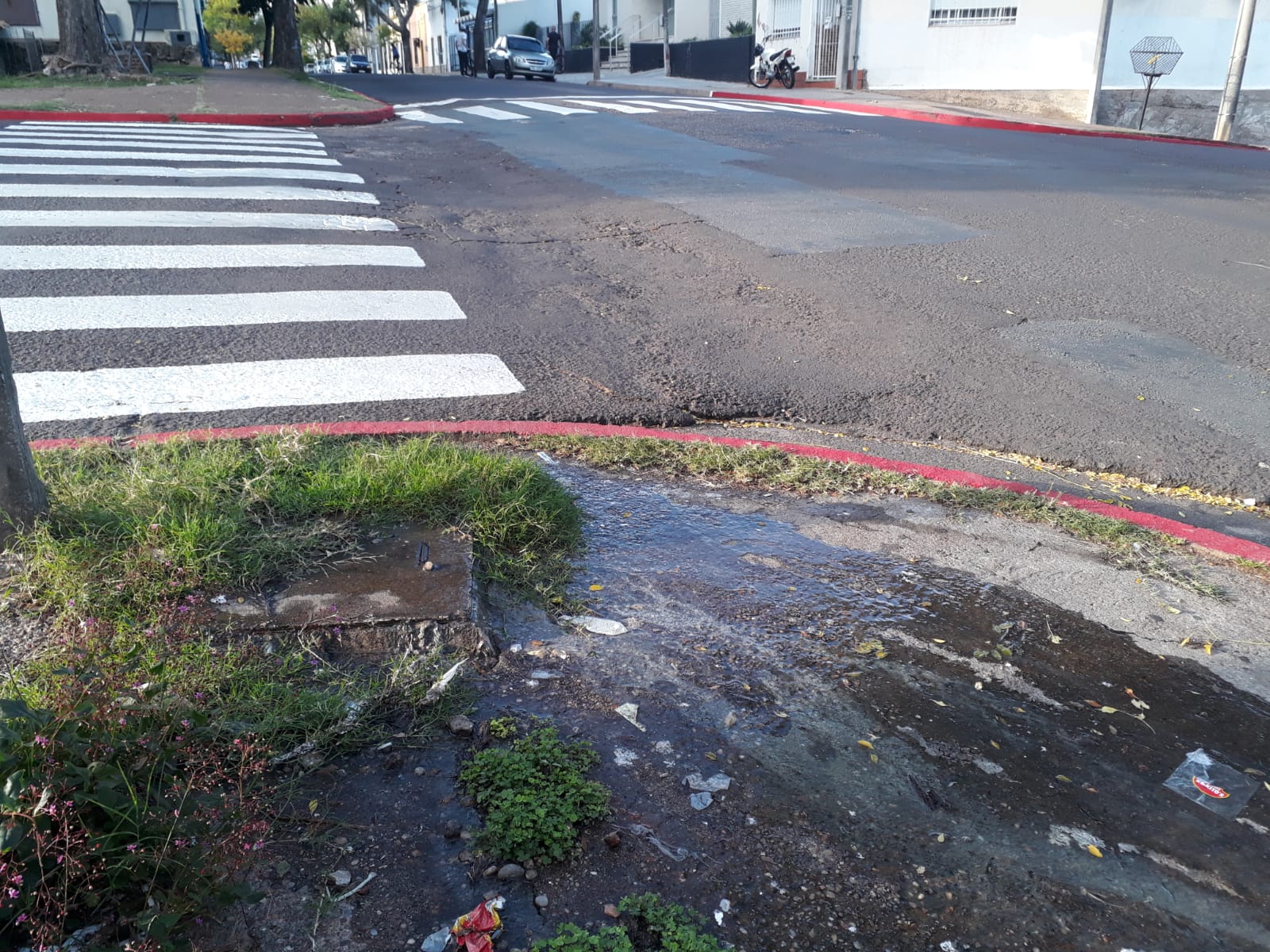 En frente a la emergencia del Hospital, en donde hay comercios de primera necesidad, verdulería y panadería, se encuentra esta tapa de desagüe en estado de desborde. El problema sanitario es grave. Comenzando por el olor que es despedido y que el contenido que desborda de este desagüe corre calle abajo por 25 de agosto infectando toda la vecindad. Además el cruce peatonal, con cebra queda inhabilitado en esta calle doble vía, el ciudadano debe optar por cruzar la calle con seguridad o pisar aguas putrefactas y vegetación que ya crece alrededor.