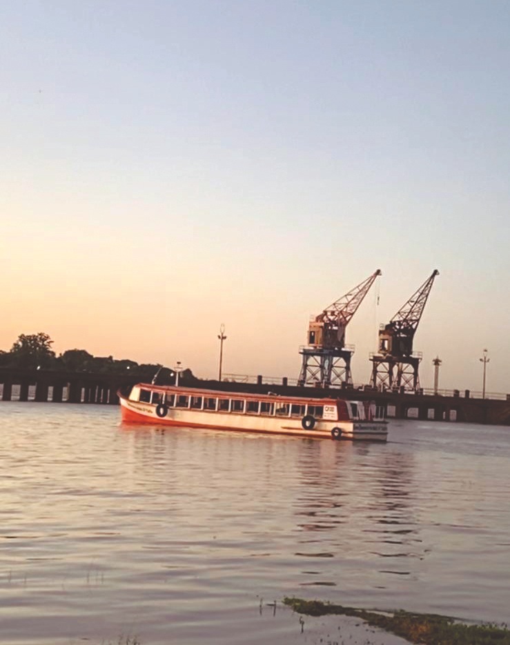 La foto corresponde a la lancha Don Demetrio y el entorno espectacular a las costas del río Uruguay. No hace mucho tiempo este servicio turístico y de transporte estuvo cerca de apagar sus motores por falta de clientela. Con regocijo pudimos ver en los últimos días que mismo estaba lleno de pasajeros para salir a disfrutar de nuestros paisajes. Ojalá continúe así.