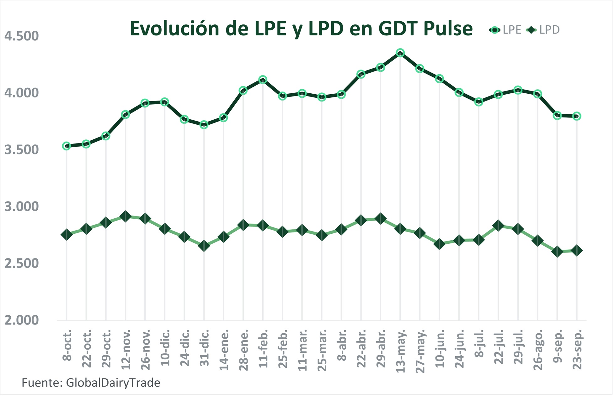 La próxima licitación está prevista para el martes 30, con la tercera venta de GDT Pulse. Las ventas tradicionales de GlobalDairyTrade, se desarrollarán los días martes 7 y 21 de octubre, mientras que las Pulse del próximo mes serán los martes 14 y 28.