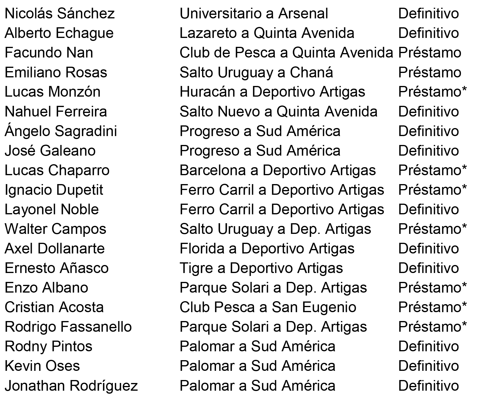 *Nota: préstamo hasta el 31 de julio.
