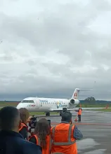 El vuelo de la Linea Paraguaya Paranir salio del Aeropuerto de carrasco (Canelones) a las 8:50 de la manaña de hoy y llego al aeropuerto de Salto a las 10:00, donde muchos Salteños estaban entusiasmados esperando