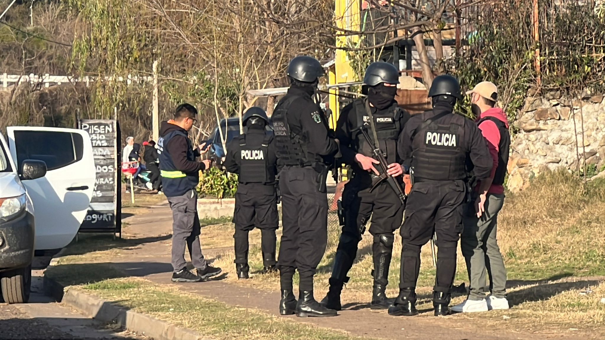 Mediante un procedimiento de la Dirección de investigaciones de la Jefatura de Policía de Salto, con apoyo de efectivos del PADO y GRT, se realizó en la jornada de ayer un operativo antidroga en calle Corrientes casi Avenida Solari, barrio Salto Nuevo. Se efectuaron cuatro allanamientos simultáneos en varias viviendas de la zona, donde se detuvo a 9 personas, 5 de ellas hombres mayores de edad, 3 mujeres mayores de edad y un adolescente. La particularidad del procedimiento es que todos los detenidos son familiares, que fueron seguidos mediante un minucioso trabajo de investigación que culminó con el procedimiento de ayer. La operación movilizó a varios efectivos en moto y en vehículos y permitió el cierre de varias “bocas” de venta de drogas en esa zona de la ciudad.