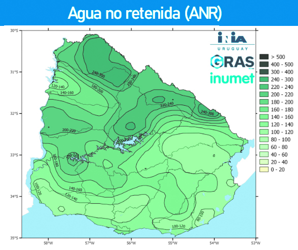 El Agua no Retenida en el Suelo (ANR), que incluye el escurrimiento superficial y los excesos de agua, también fue notablemente alto durante abril, con volúmenes excedentes en todo el territorio. En cuanto al Índice de Bienestar Hídrico, se observa una situación favorable, con valores estimados entre 90% y 100%.