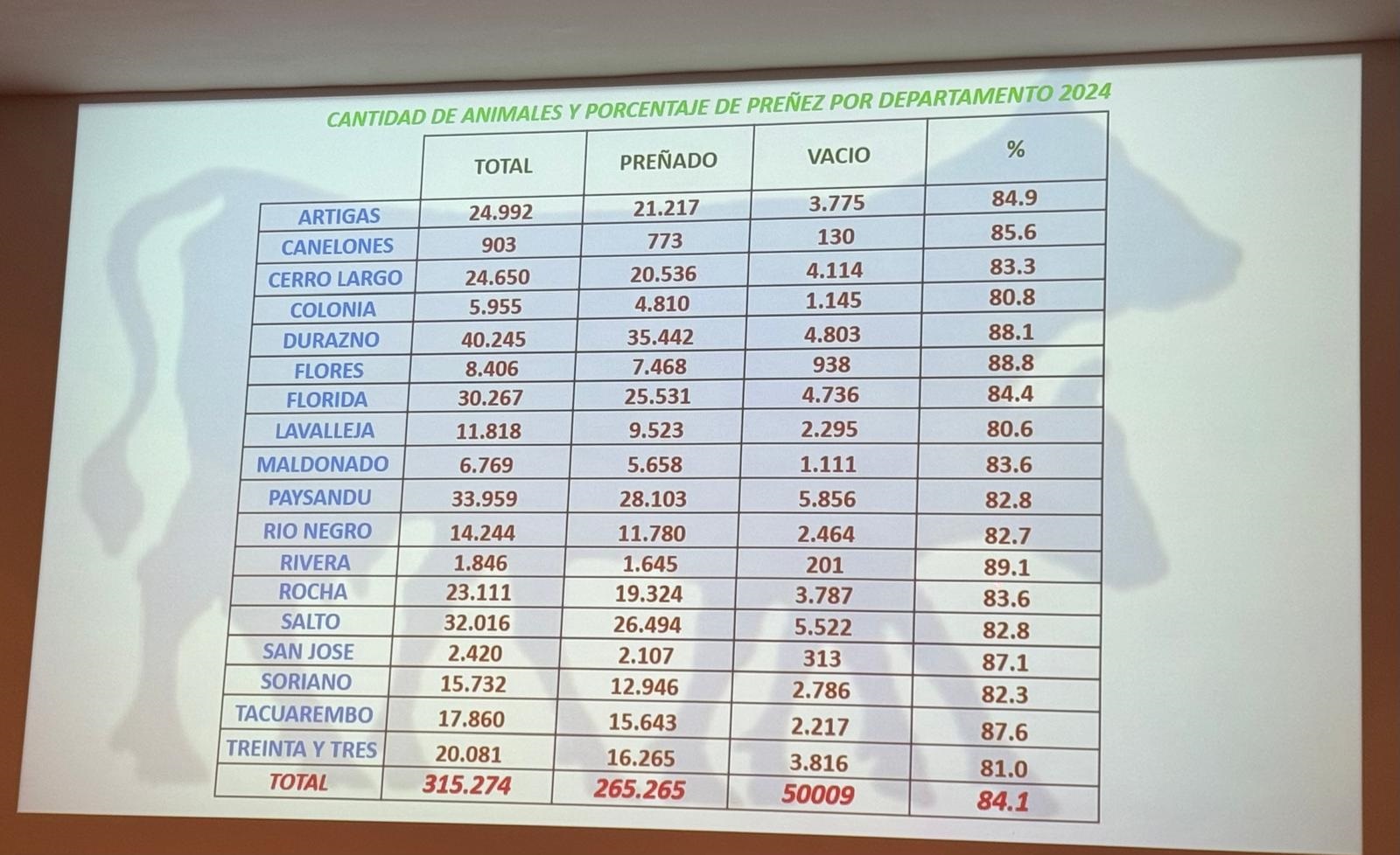 En Artigas se evaluaron 24.992 vientres, alcanzando un 84,9% de preñez. Por su parte en Salto se evaluaron 32.016 vientres con un 82,9% y en Paysandú se registró un 82,8% de preñez en un total de 33.959 vientres evaluados.