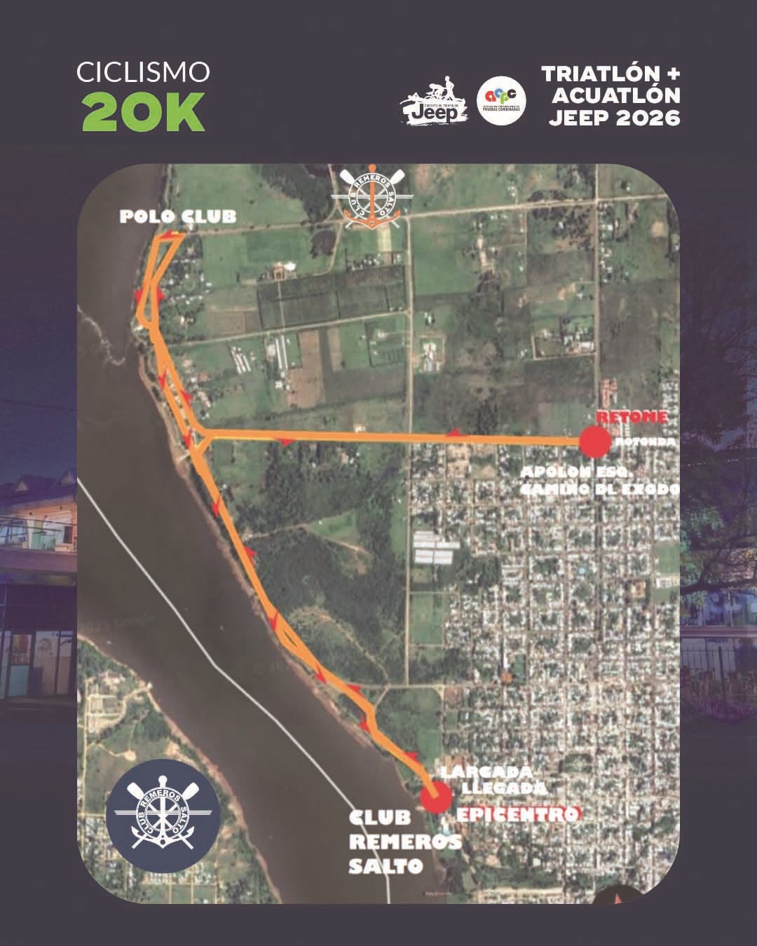 La 5ª fecha del Circuito Internacional de Triatlón + Acuatlón Jeep temporada 2026 organizado por la Asociación Concordiense de Pruebas Combinadas (ACPC) será el próximo sábado 31 de enero en Salto. Las inscripciones se podrán realizar hasta el jueves 29 de enero a través de la web: www.encarrera.com.ar/triasalto. La prueba convoca a atletas de distintos puntos de la región, vale señalar que la competencia cuenta con varias fechas que ya se desarrollaron en Colón, Concordia, Federación y Victoria, ahora cruzan el charco a Salto, con una etapa final en la localidad entrerriana de Santa Ana. La fecha en Salto fue posible gracias al trabajo conjunto con el Club Remeros de Salto (CRS) y el apoyo del Gobierno de Salto. La competencia se realizará desde las 16:00 horas y contará con categorías individuales, por edades, promocionales, para novatos y modalidades de posta, además de una prueba de duatlón. “