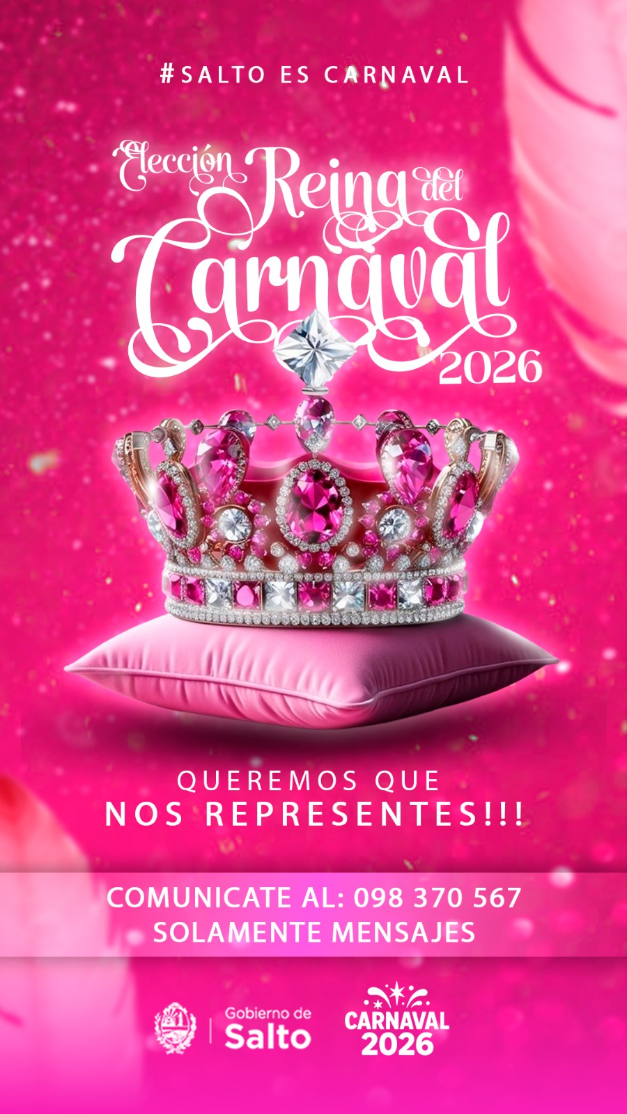 Las bases y condiciones para ser aspirante a Reina del Carnaval de Salto 2026 ya pueden verse en el sitio web de la Intendencia de Salto con el link https://salto.gub.uy/carnaval-2026, donde se puede acceder a toda la información de las celebraciones del próximo Carnaval.