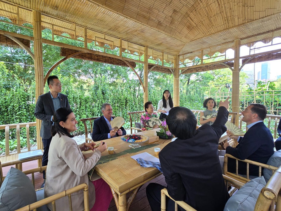 El ministro Fernando Mattos, acompañado por la directora de la Unidad de Asuntos Internacionales Adriana Lupinacci, en su misión oficial por China, se reunió con Jiang Zehui, copresidenta de la Organización Internacional del Bambú y el Ratán (INBAR), luego que se promulgara la ley 20.294 de dicha organización habilitando la incorporación de nuestro país a la organización.